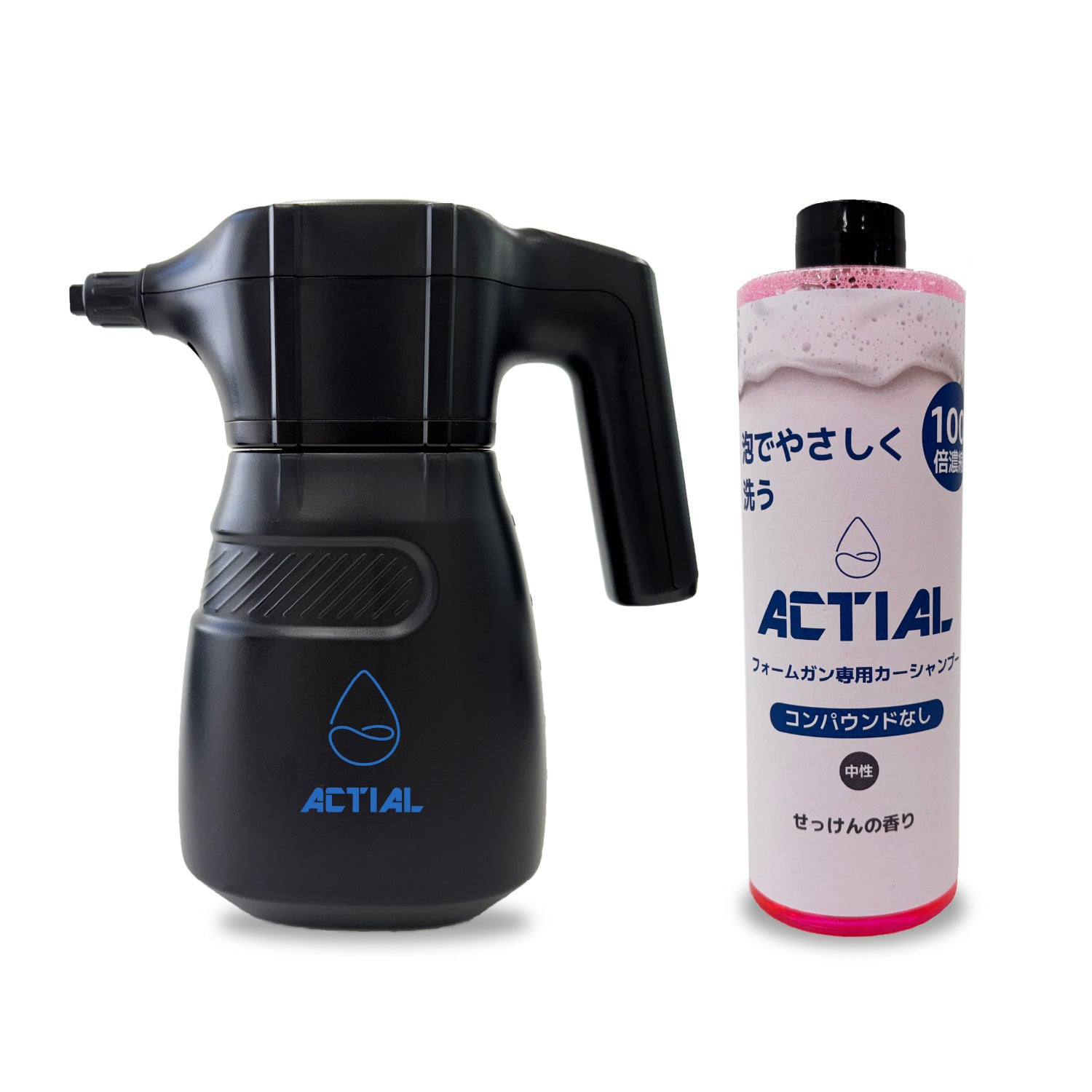 【濃密泡・静音設計】ACTIAL フォームガン 電動泡洗車機 高圧0.36MPa 専用シャンプー付属 リチウム電池内蔵 ワンタッチ操作 自動加圧タイプ