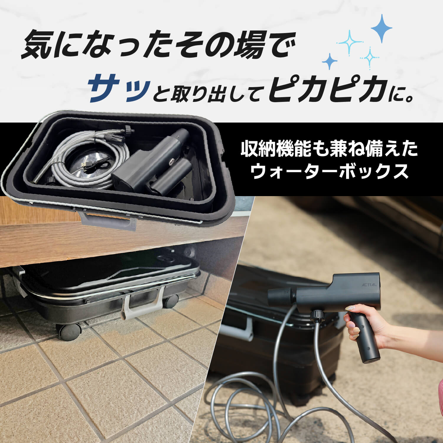 🚿【コードレスでどこでも使える!ACTIAL 高圧洗浄機+収納ウォーターボックスセット】